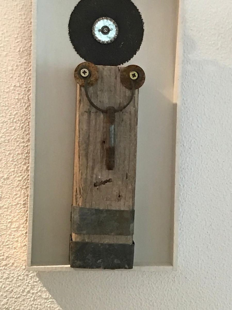 Het werd het laatste. Met veel plezier ben ik van start gegaan met het maken van kistjes waarin ik de gevonden voorwerpen kon verwerken. Door de materialen te isoleren en te kaderen in kistjes ontstond een nieuwe vormgeving en kreeg het alledaagse object een andere betekenis. Vervolgens ontstond er haast vanzelf een titel voor het werk waardoor het voor mijn gevoel afgerond werd.